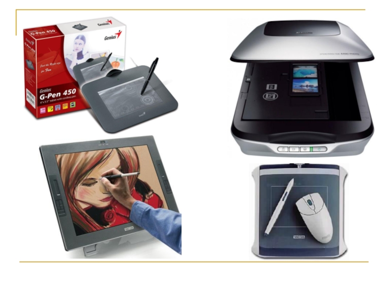 Слайд 49Планшетные сканеры предназначены для ввода графической информации с прозрачного или