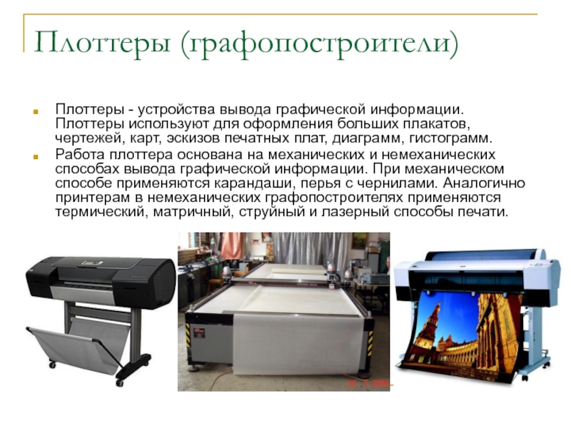 Плоттеры - устройства вывода графической информации. Плоттеры используют