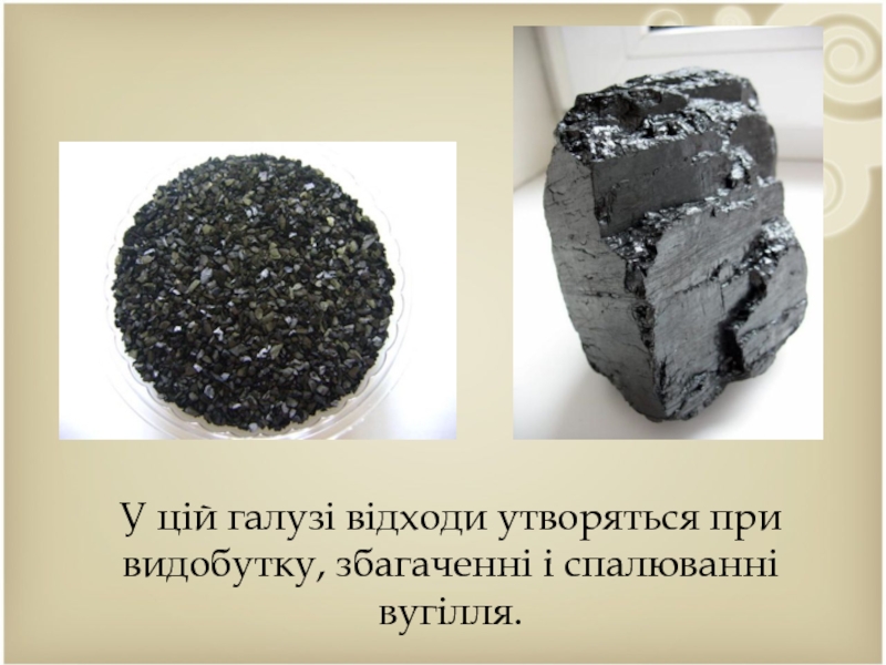 Слайд 3У цій галузі відходи утворяться при видобутку, збагаченні і спалюванні