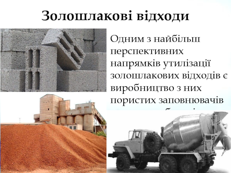Золошлакові відходиОдним з найбільш перспективних напрямків утилізації золошлакових відходів є виробництво з них пористих заповнювачів для легких