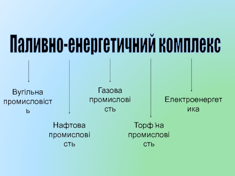 Паливно-енергетичний комплекс Вугільна промисловістьНафтова промисловістьГазова промисловістьТорф’на промисловістьЕлектроенергетика