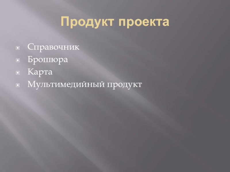 Продукт проектаСправочникБрошюраКартаМультимедийный продукт