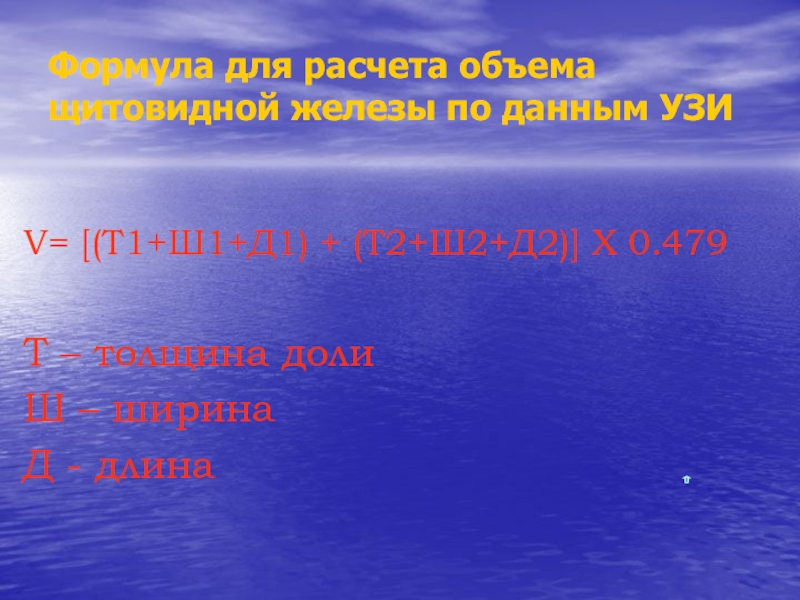 Слайд 4Формула для расчета объема щитовидной железы по данным УЗИ