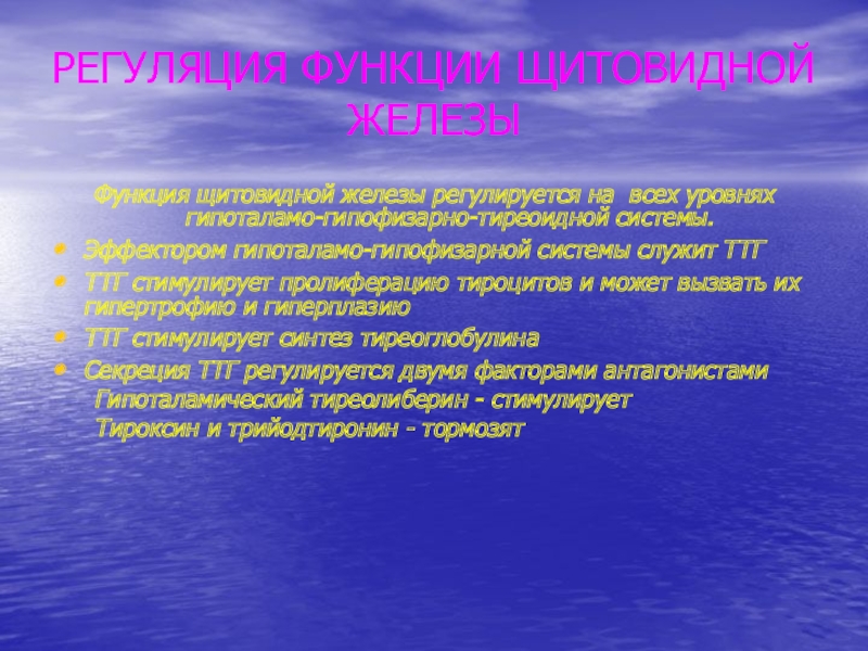 Слайд 6РЕГУЛЯЦИЯ ФУНКЦИИ ЩИТОВИДНОЙ ЖЕЛЕЗЫ