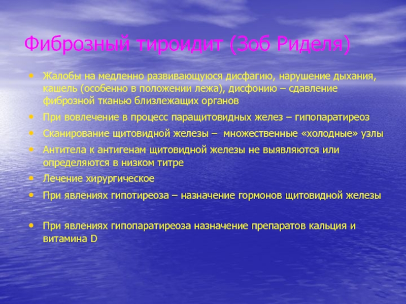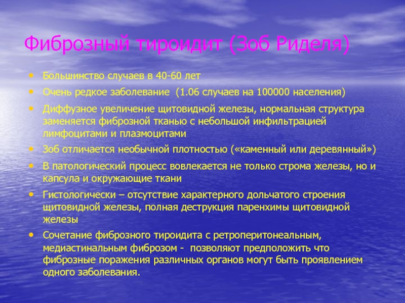 Слайд 35Фиброзный тироидит (Зоб Риделя)