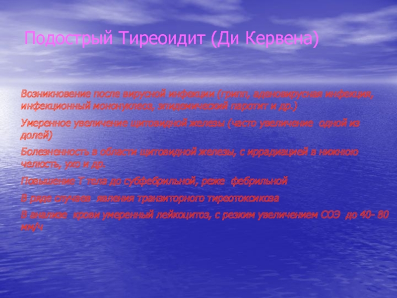 Слайд 32Подострый Тиреоидит (Ди Кервена)