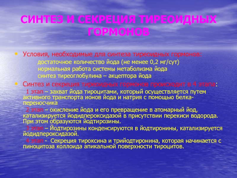 Слайд 8СИНТЕЗ И СЕКРЕЦИЯ ТИРЕОИДНЫХ ГОРМОНОВ