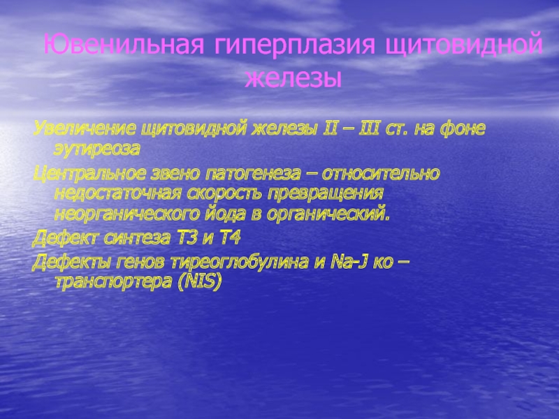 Слайд 39Ювенильная гиперплазия щитовидной железы
