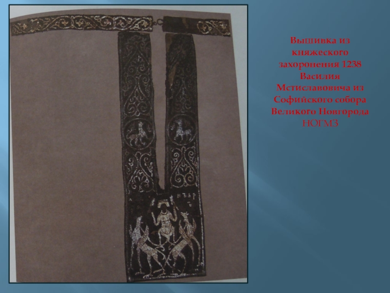Слайд 42Вышивка из княжеского захоронения 1238 Василия Мстиславовича из Софийского собора