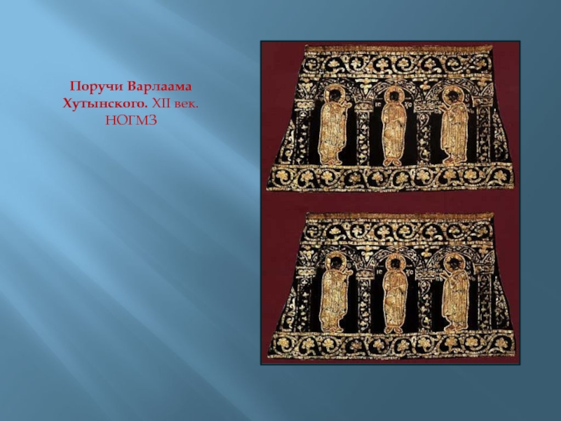 Слайд 41Поручи Варлаама Хутынского. XII век. НОГМЗ