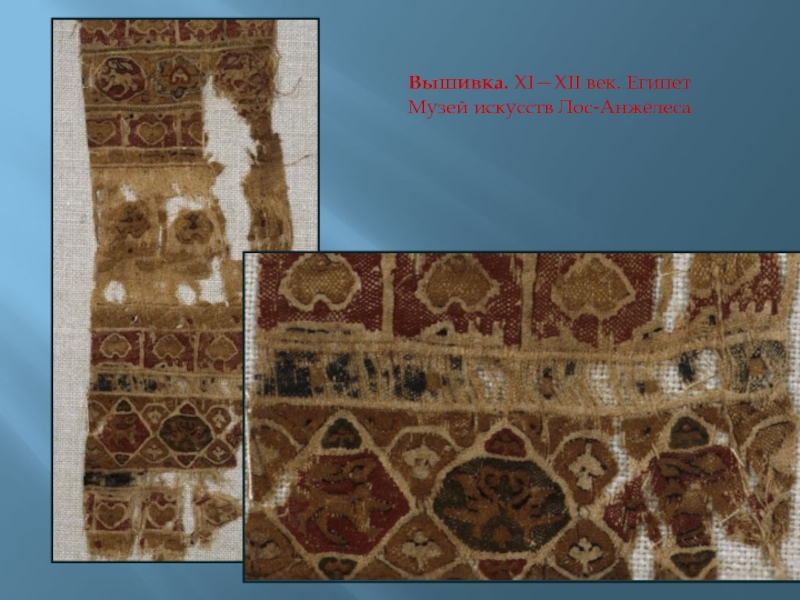 Слайд 39Вышивка. XI—XII век. Египет Музей искусств Лос-Анжелеса
