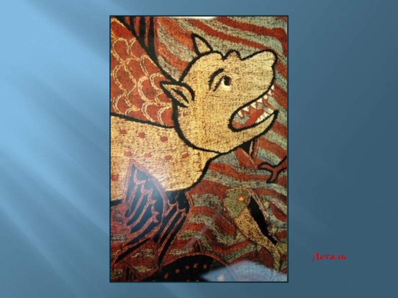 Слайд 2Фрагмент ткани с птицей и орнаментом Лен, шерсть; гобеленовое переплетение.