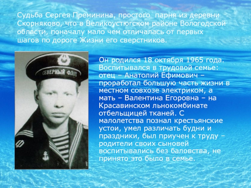 Судьба Сергея Преминина, простого парня из деревни Скорняково, что в Великоустюгском районе Вологодской области, поначалу мало чем отличалась от первых шагов по дороге Жизни его сверстников.