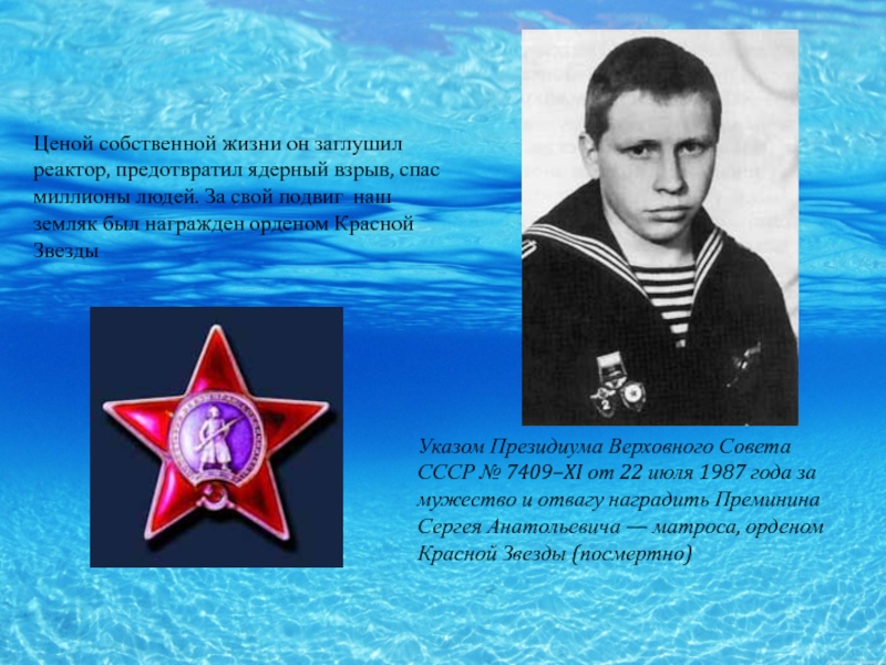 Ценой собственной жизни он заглушил реактор, предотвратил ядерный взрыв, спас миллионы людей. За свой подвиг наш земляк был награжден орденом Красной Звезды