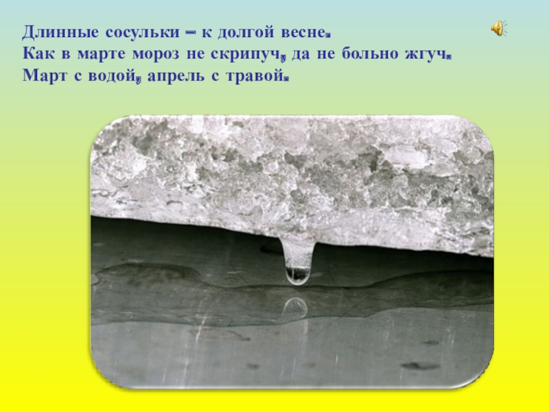 Слайд 13 Первые сосульки! Первые лужи! А первый дож-