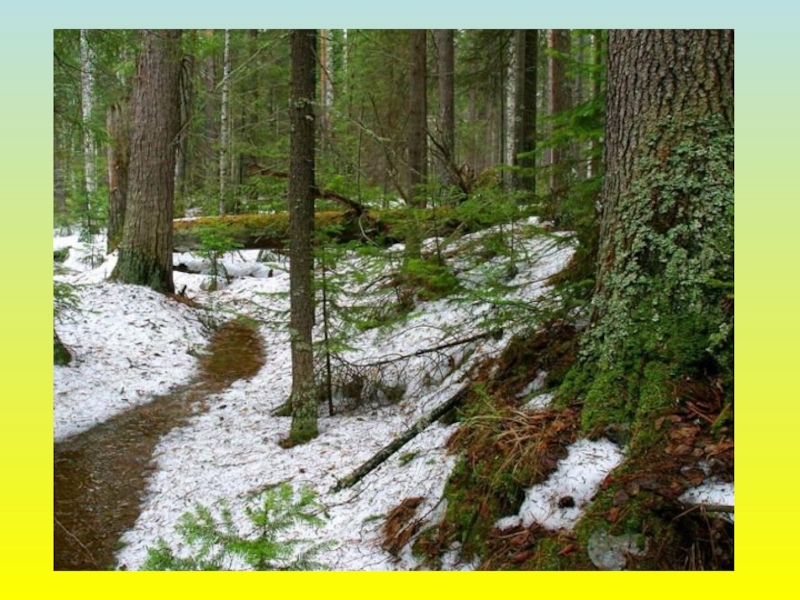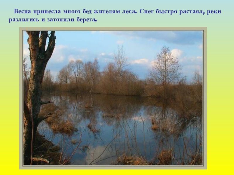 Слайд 20 Весна принесла много бед жителям леса. Снег быстро растаял,
