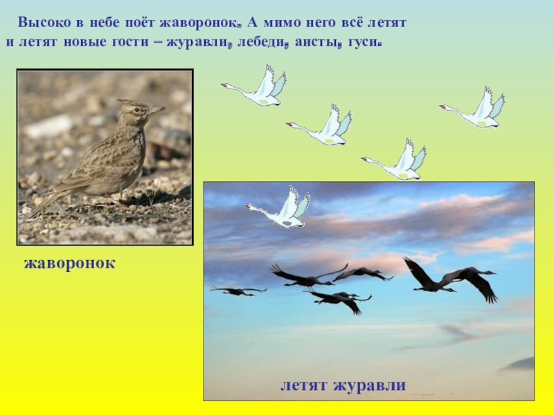 и летят новые гости – журавли, лебеди, аисты, гуси.