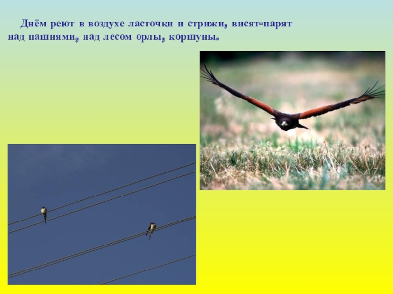 Слайд 51 Днём реют в воздухе ласточки и стрижи, висят-парят