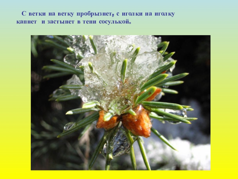 Слайд 13 С ветки на ветку пробрызнет, с иголки на иголку