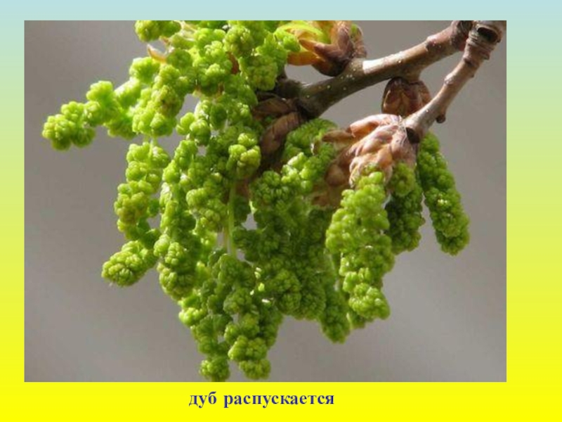 Слайд 38 А под дубом, где растут длинными серёжками кусты