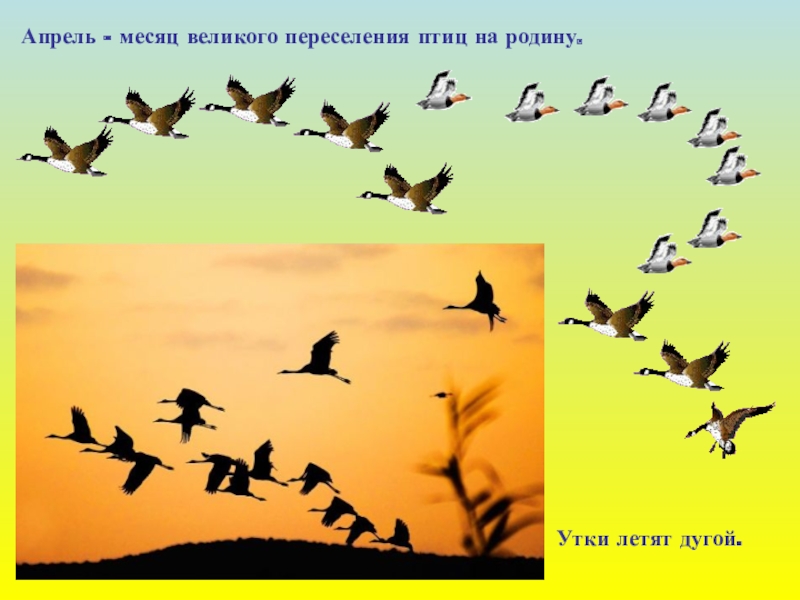 Слайд 32Апрель - месяц великого переселения птиц на родину.