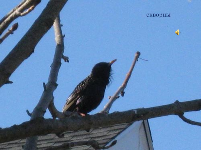 Слайд 41 Скворцы уже давно облюбовали себе домики и заботливо устраивают