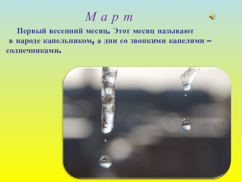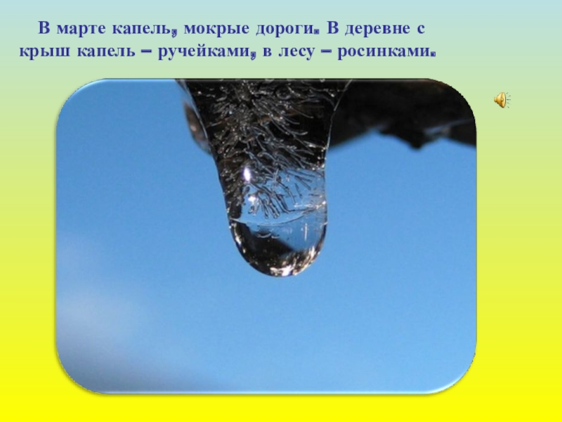 Слайд 11 В марте капель, мокрые дороги. В деревне с