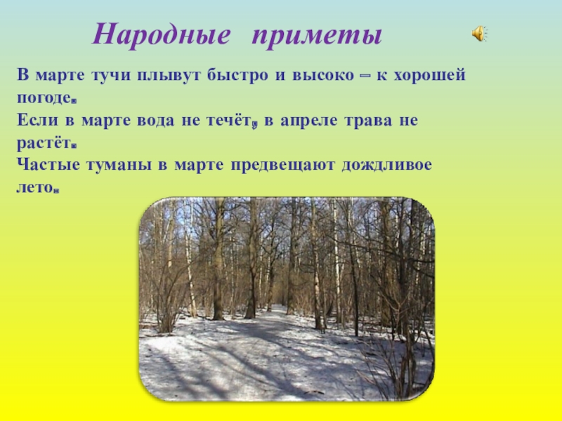 Слайд 10 Март – проба голосов птиц-зимовщиков: