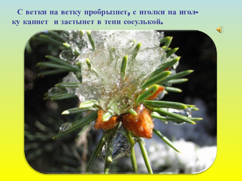 Слайд 12 С ветки на ветку пробрызнет, с иголки на игол-