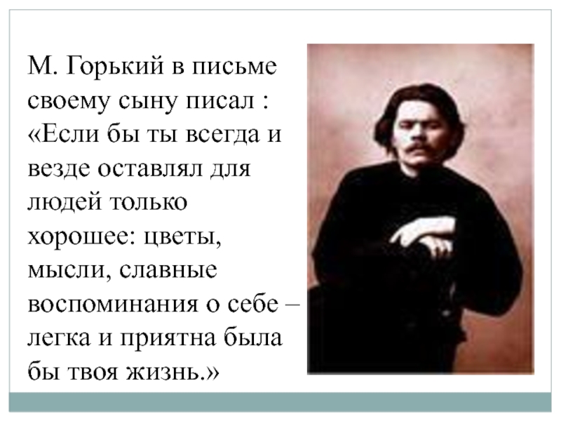 М. Горький в письме своему сыну писал : «Если бы ты всегда и везде оставлял для людей