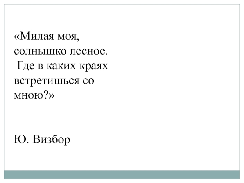 «Милая моя, солнышко лесное. Где в каких краях встретишься со мною?»Ю. Визбор