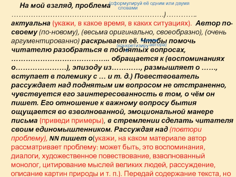 работая с текстом, отмечай предложения, в которых, по твоему мнению, содержатся проблема, авторская позиция, наиболее яркие конструкции для комментария к тексту;