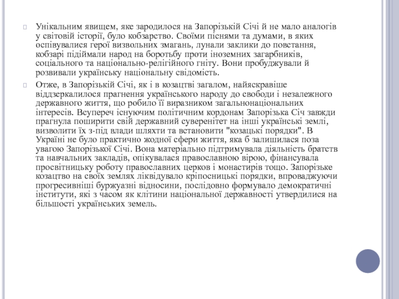 Слайд 9Унікальним явищем, яке зародилося на Запорізькій Січі й не мало