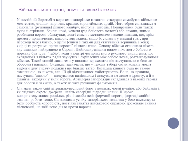 Слайд 2 Військове мистецтво, побут та звичаї козаків