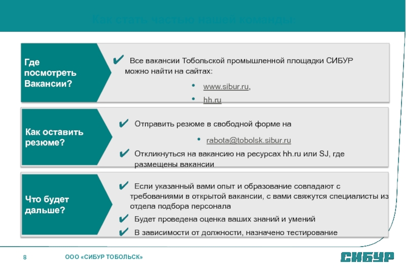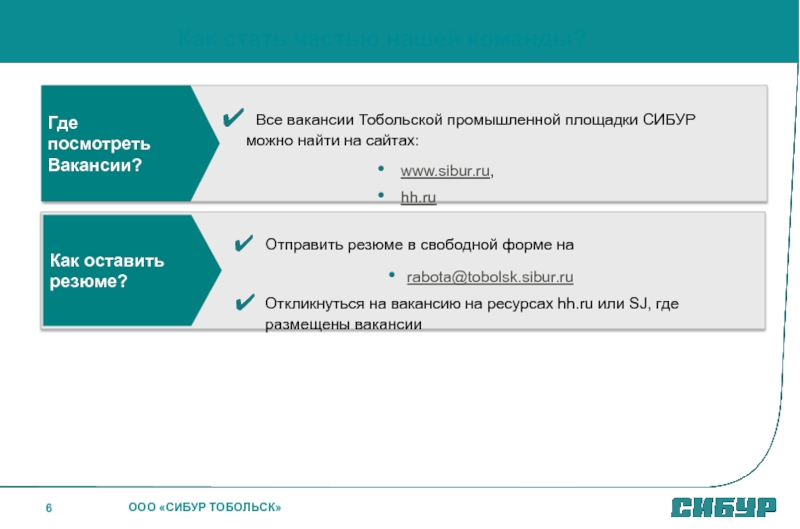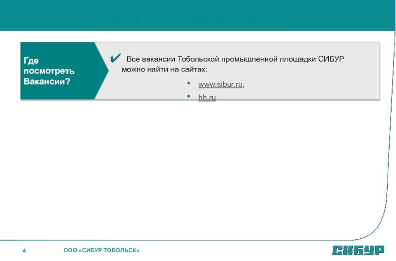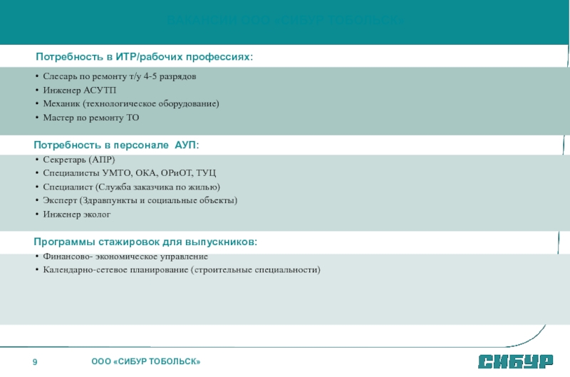 ВАКАНСИИ ООО «СИБУР ТОБОЛЬСК»