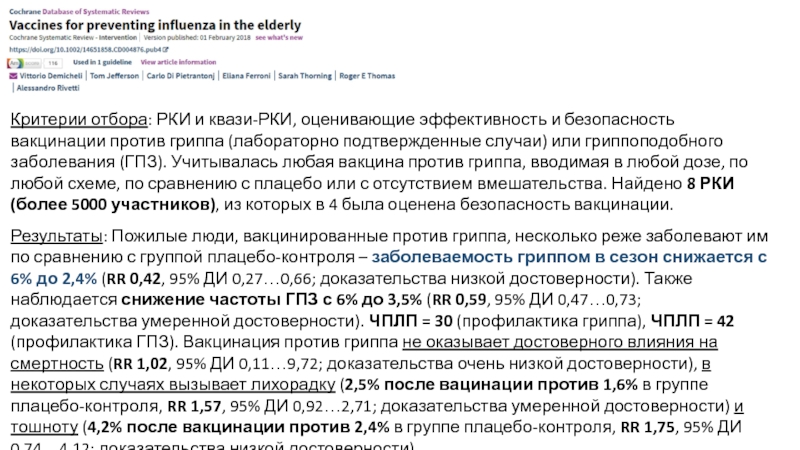 Слайд 4Критерии отбора: РКИ и квази-РКИ, оценивающие эффективность и безопасность вакцинации