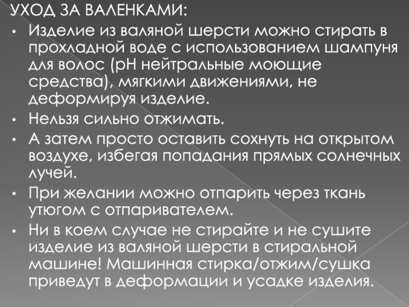 Слайд 15УХОД ЗА ВАЛЕНКАМИ: