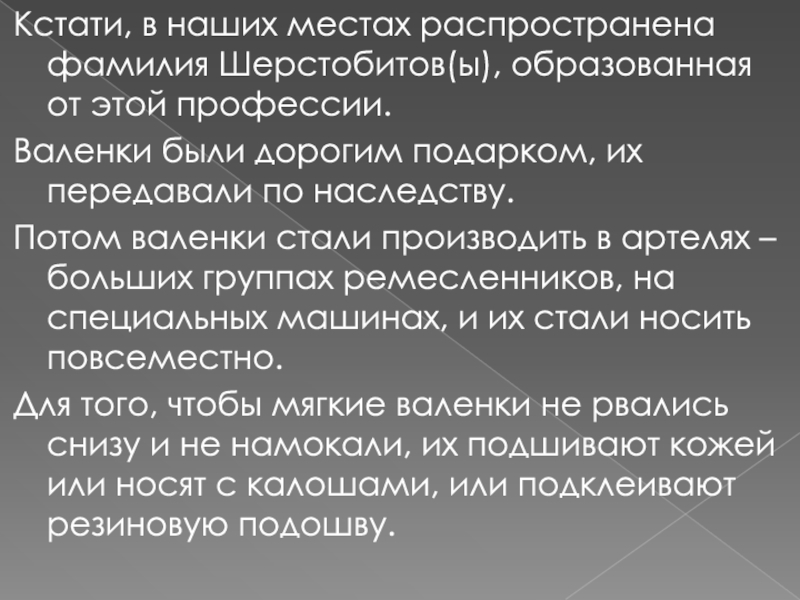 Слайд 7До революции одним из населённых пунктов, где делали валенки и