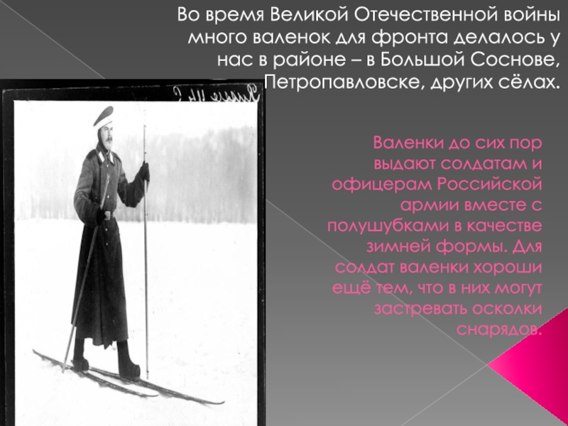 Слайд 8Валенки до сих пор выдают солдатам и офицерам Российской армии