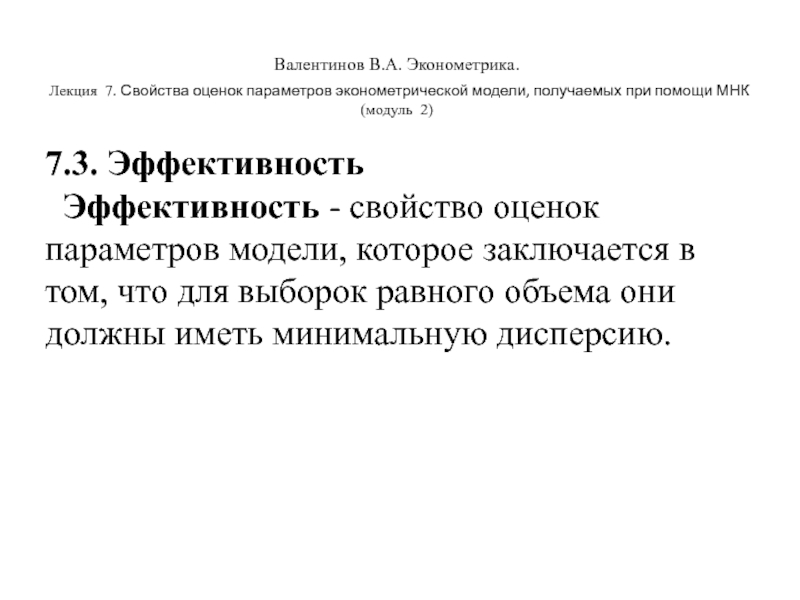 Валентинов В.А. Эконометрика. Лекция 7. Свойства оценок параметров эконометрической модели, получаемых при помощи МНК (модуль 2)7.3.