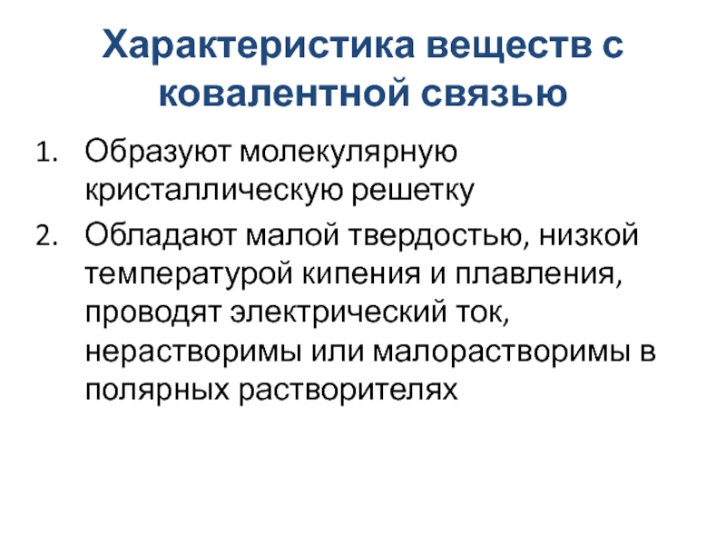Слайд 26Характеристика веществ с ковалентной связью