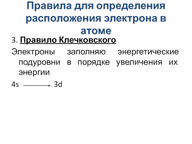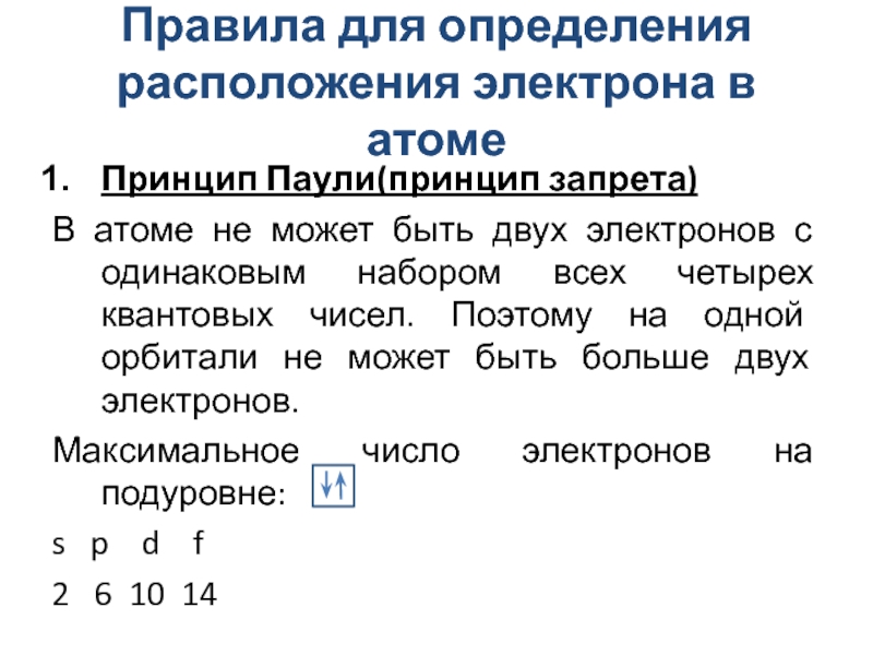 Слайд 12Правила для определения расположения электрона в атоме