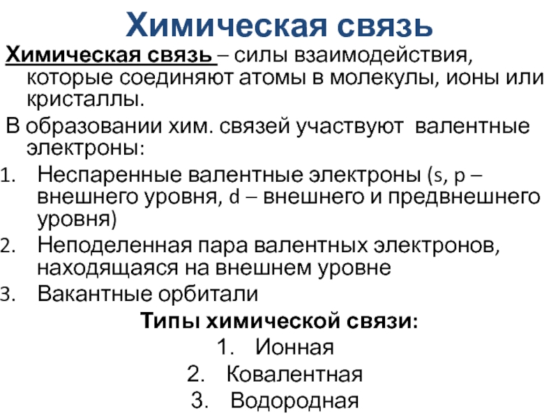 Типы химической связи: