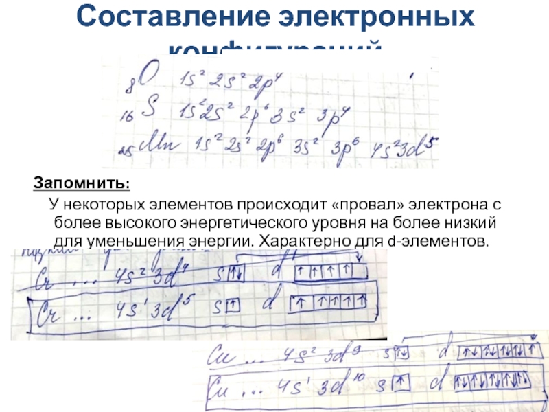 Слайд 18Составление электронных конфигураций