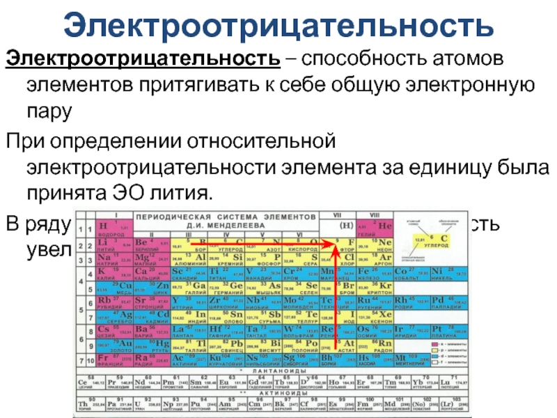 Электроотрицательность – способность атомов элементов притягивать к себе общую электронную