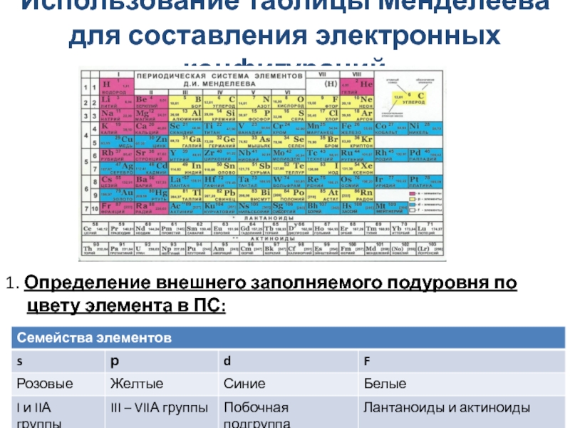 Слайд 15Использование таблицы Менделеева для составления электронных конфигураций