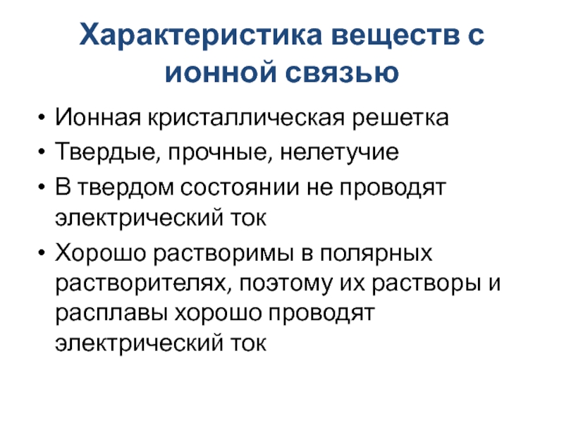 Слайд 23Характеристика веществ с ионной связью