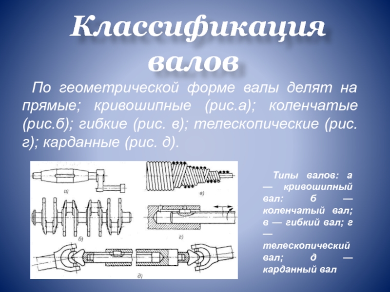 шкивов, зубчатых колес, звездочек, катков и т. д. и для передачи вращающего момента.При работе вал испытывает изгиб и кручение. Некоторые валы работают только на кручение.
