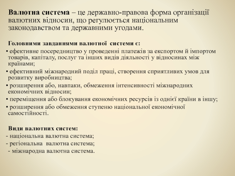 Слайд 31Валютна політика – це сукупність організаційно-правових та економічних заходів у
