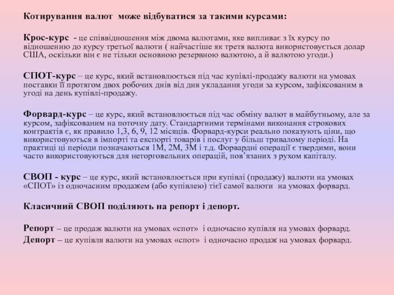 Слайд 17Котирування валют може відбуватися за такими курсами: